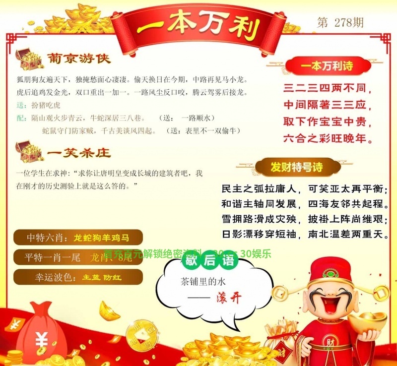 278期:六段中特╠1.2.3.4.5.6段╣开:虎28准 |